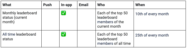 - Challenge ends (admins) — Admins are notified when a Challenge has ended