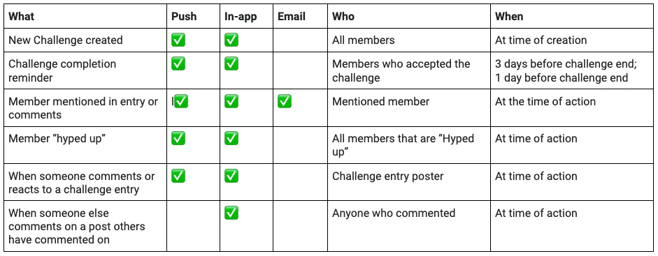 - Hype ups — Members are notified when they get a Hype up in a Challenge